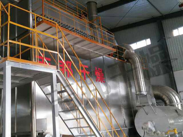 臥式噴霧干燥塔干燥溫度的影響:臥式噴霧干燥塔作業(yè)中,干燥用熱風(fēng)進(jìn)入塔內(nèi)的溫度(熱風(fēng)溫度)與出口溫度(排風(fēng)溫度)的決定是很重要的。排風(fēng)溫度與產(chǎn)品的水分含量有關(guān),應(yīng)按產(chǎn)品容許的水分來決定。熱風(fēng)溫度越高熱效率越高,經(jīng)濟(jì)性越好。但是過高的熱風(fēng)溫度會(huì)造成產(chǎn)品質(zhì)量變劣,因此熱風(fēng)溫度必須在保證產(chǎn)品質(zhì)量的前提下適當(dāng)提高。臥式噴霧干燥塔熱風(fēng)溫度將對產(chǎn)品的松密度發(fā)生明顯的影響。高溫?zé)犸L(fēng)有產(chǎn)生低松密度的傾向,這是由于熱風(fēng)有快速干燥作用,使顆粒表面硬化并使殘留濕氣膨脹,而促進(jìn)了氣球狀中空顆粒的形成。假如要求高的松密度(低比容),或要求實(shí)心顆粒,則設(shè)計(jì)時(shí)不應(yīng)使用高溫?zé)犸L(fēng)與新形成的霧滴接觸。在化學(xué)藥品的干燥中,熱風(fēng)溫度高達(dá)538℃,產(chǎn)品顆粒大。